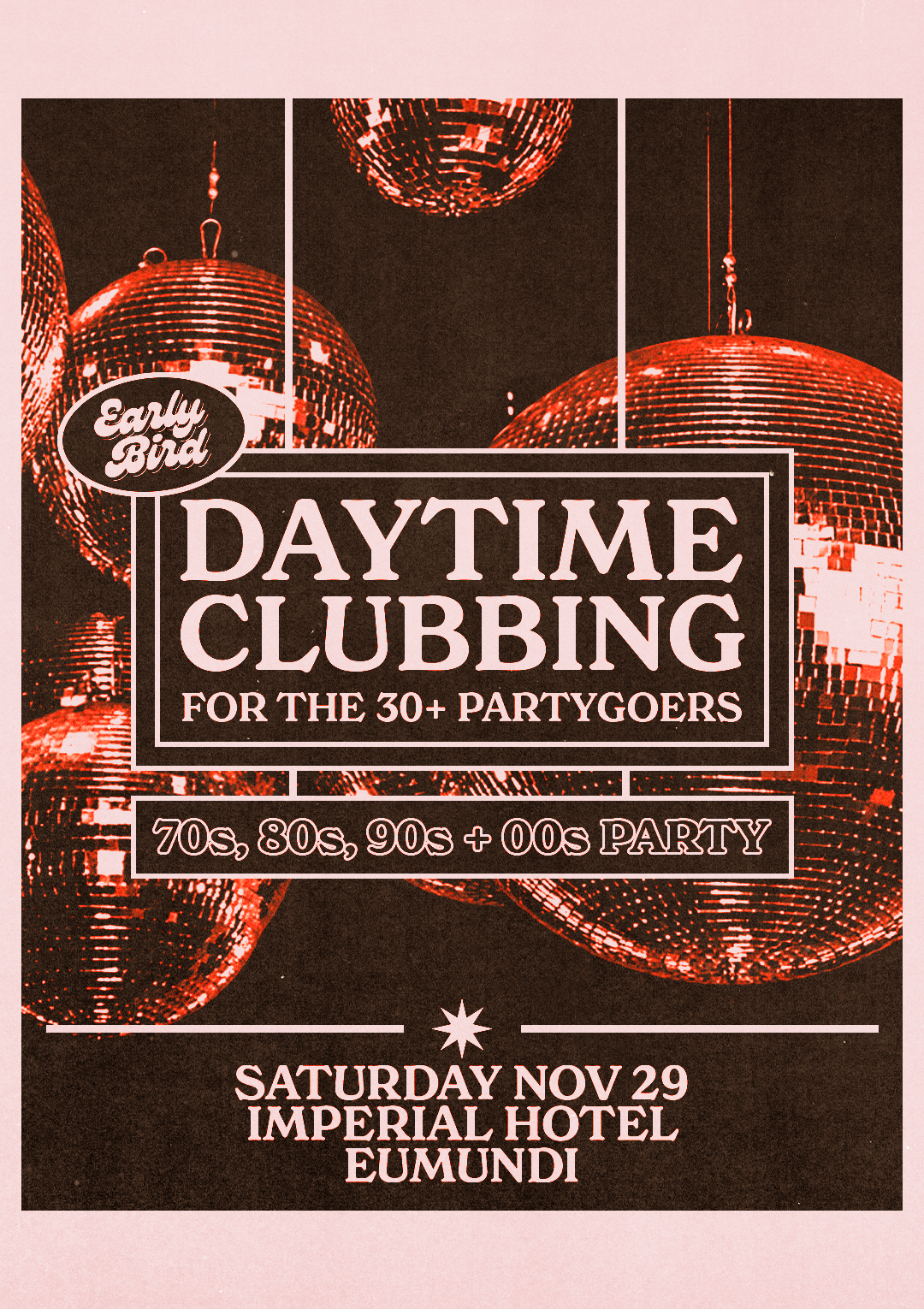 Calling all Early Birds! Come join us for our daytime clubbing party for seasoned party goers who are 30+ and love going to bed at a reasonable time...Our DJ’s will be spinning all your favourite hits from the 70s through to the early 00s for one unforgettable evening.