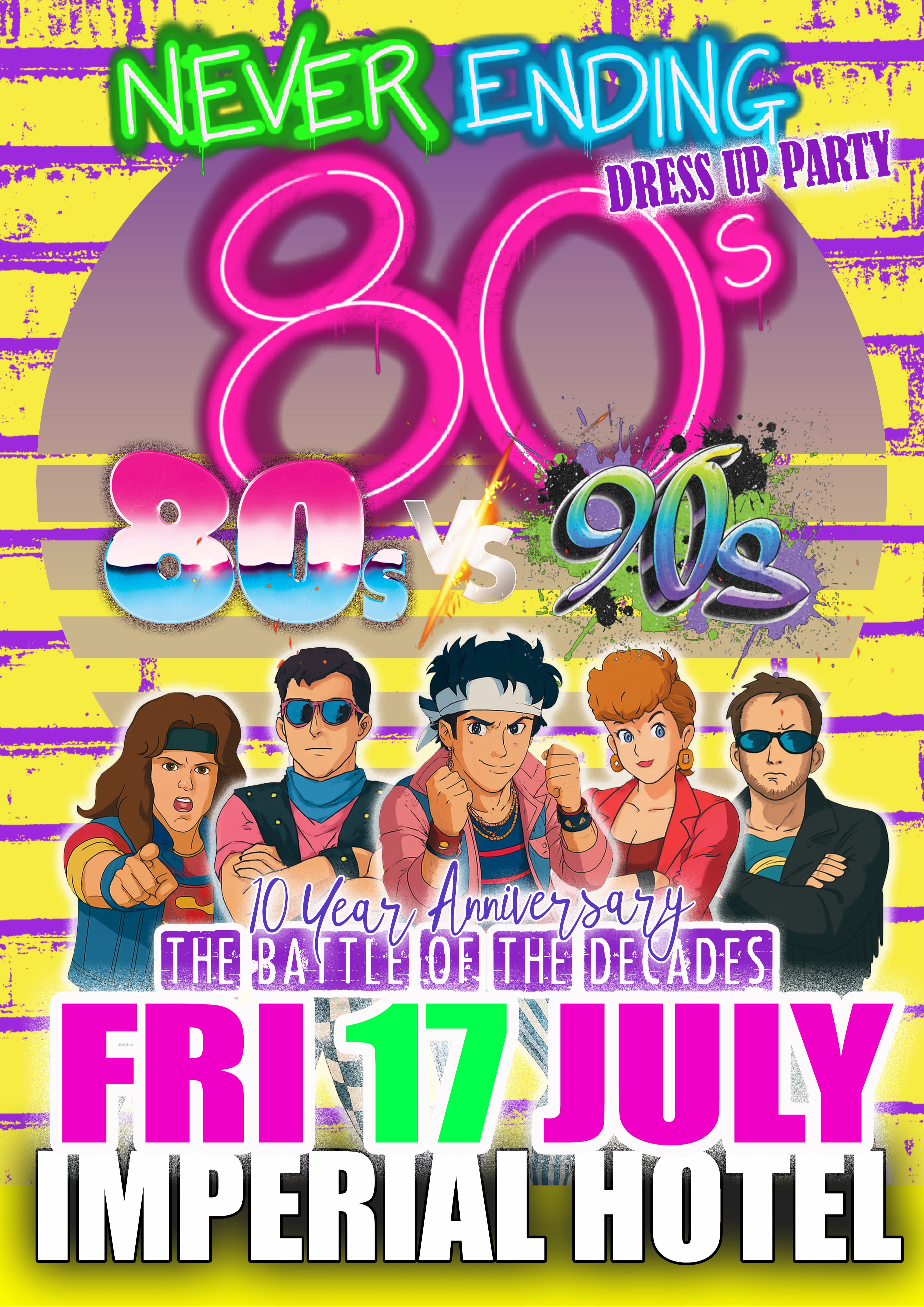NEVER ENDING 80S PRESENTS: 80S V 90S THE BATTLE OF THE DECADES - DRESS UP PARTY - 10 YEAR ANNIVERSARY