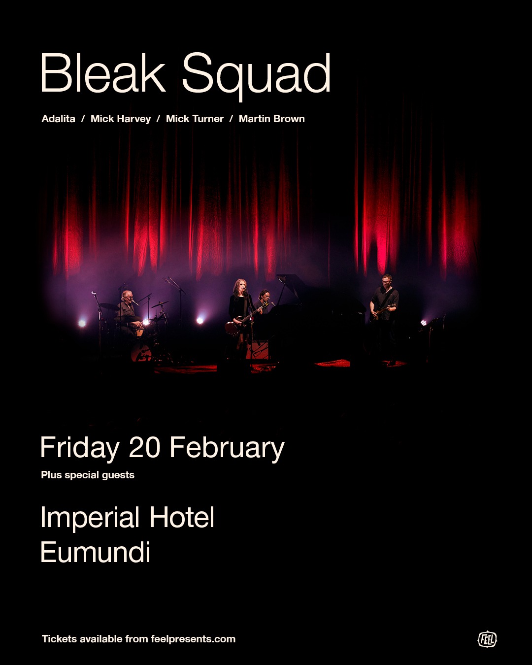 Bleak Squad is a new Melbourne four-piece made up of true Australian art-rock royalty — Mick Turner (Dirty Three, Mess Esque), Mick Harvey (Nick Cave & The Bad Seeds, PJ Harvey, The Birthday Party), Adalita (Magic Dirt), and Marty Brown (Art of Fighting).